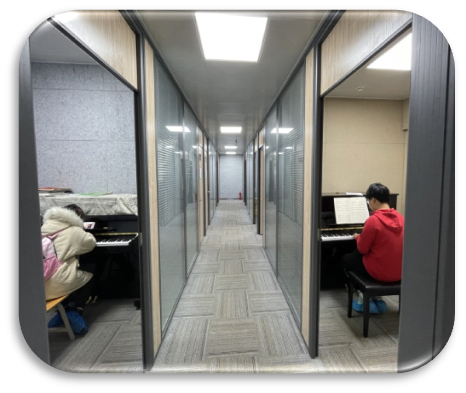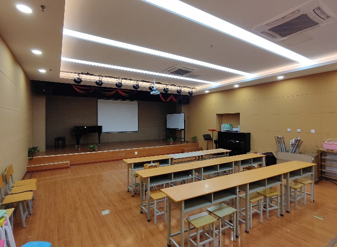 “音苑”实训中心在满足音乐学专业学生日常必修及主修器乐练习需求的同时,开设有合唱排练、舞蹈短节目排练、电声乐队排练等实践项目。实训室开放时间为每天8:00至22:00,音乐教室及舞蹈创编室主要为教学及排练使用,在上课及排练时开放;琴房分为学生琴房和教师琴房,学生琴房承担音乐学专业日常必修及主修器乐练习任务,全天开放,每间琴房固定学生固定时间轮转使用;教师琴房承担音乐学声乐、钢琴及各类器乐教师的教学任务,课余时间对学生开放,同样采用固定学生固定时间轮转使用的运行方式。音乐综合实训室承担音乐学专业合唱与指挥、重唱与表演唱等课程,同时配备的舞台灯光等设备,可供音乐学专业开展“五项全能大赛”以及一些小型汇报表演。