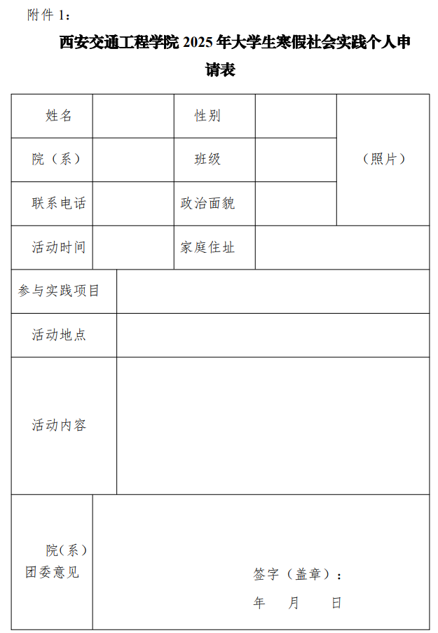 为深入学习党的二十届三中全会精神和全国教育大会 精神,深刻领会习近平总书记关于青年工作的重要思想,引 领我院青年学生在投身基层建设、服务家乡发展中坚定信念、 增长本领、作出贡献,我校将于 2025 年寒假组织开展“返 家乡”社会实践活动。现将相关事宜通知如下: