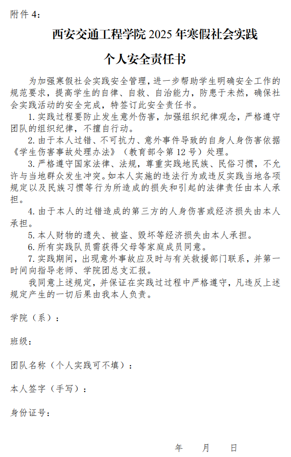 4.社会实践安全责任书 共青团伟德BV1946委员会