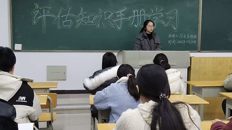 活动现场,学长导师们依托多媒体课件,以清晰易懂的逻辑的讲解本科教学评估核心要义。宣讲内容紧密结合学校1994年创办以来的发展历程,系统阐释了评估对学校改善办学条件、规范教学管理、提升教学质量的重要意义,着重强调本科教学评估既是对学校三十余年办学实力的全面检验,更是凝聚师生力量、推动学校高质量发展与学生个人成长的重要契机。为增强宣讲实效,学长导师们设置“评估知识小问答”互动环节,通过精准提问引导新生主动思考,针对“新生如何践行评估要求”“日常学习中能为评估做什么”等热点问题进行现场答疑,充分调动新生参与积极性,让评估知识入脑入心。
