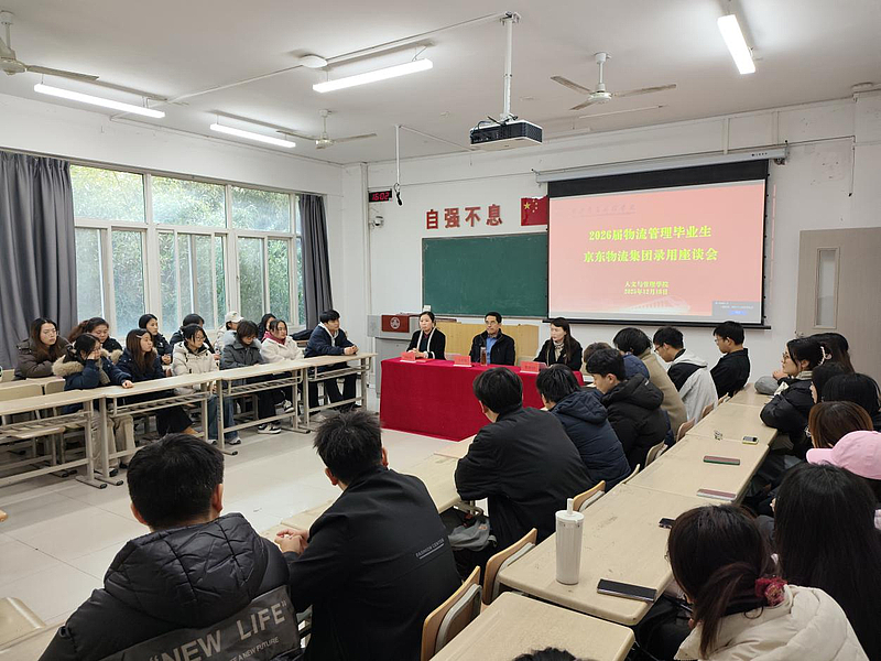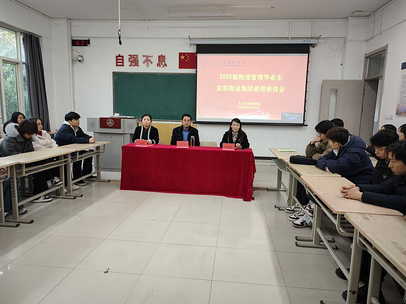 12月18日下午,bevictor伟德国际1946在3-209召开2026届物流管理专业毕业生京东物流集团录用座谈会暨就业动员会。院长赵德利、党委书记兼副院长李沙沙、物流管理教研室主任刘红利和40名成功获得京东物流集团录用资格的2026届物流管理专业毕业生参加会议。会议由辅导员杨馨烨老师主持。